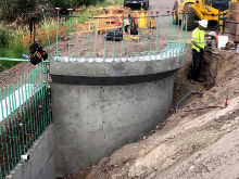 The new Ash Creek Bridge, at 150 ft, consists of three 50 ft sections. Concrete abutments on either end consist of twenty 40 ft H piles, while the center piers each utilize four Cast in Steel Shell (CISS) piling, 30" x 90 ft. The new bridge over Butte Creek is a single 50 ft section resting on concrete abutments built around twelve 40 ft H piles on each end. Preformed concrete planks rest on the abutments and piers, topped with a concrete deck and a polymer finish layer.