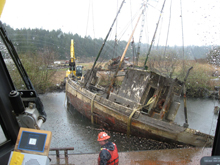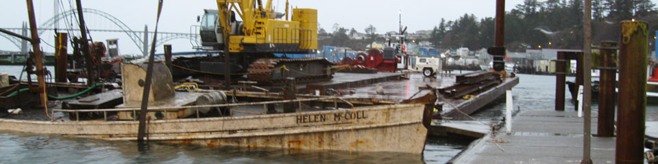 The 65-foot F/V Helen McColl, a 99 year-old wooden salmon troller, sank in the bay at Newport in November of 2009. After initial efforts to raise the vessel failed, WCC was called in February, 2010 to remove the boat from the bottom of the bay. As WCC was already performing work in the bay, this was a very cost effective solution for the Port of Newport. The salvage operation was performed with WCC's 160 ton crane sitting aboard our barge. This is one of many projects that WCC has helped the Port of Newport with over the years.