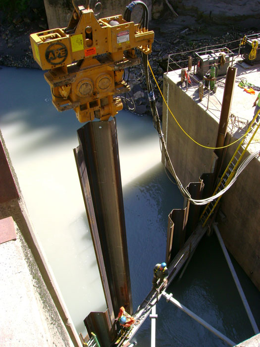 Originally constructed in 1948, the historic Mud Mountain Dam, located on Washington's White River, is 432 feet high and 1,600 feet thick at the base. The core of the dam consists of sand, gravel, and a three-foot layer of quarry rock that covers the entire structure to protect against rain wash. In 2008, WCC built a reusable cofferdam for the US Army Corps of Engineers which allowed inspection and repair of the underwater portion of the dam. This cofferdam was constructed of reusable sheet piles, put into place using a vibratory hammer from American Piledriving Equipment (APE) and a framework that was built to extremely tight specifications. Extensive work platforms were constructed to allow the crew to work safely and effectively on the project. After repairs were complete, the entire structure was removed and set aside for use in future repairs. WCC's extensive inspections ensured their comprehensive understanding of the strict requirements of the assignment, respecting the tight timetable, project schedule, and budget. WCC is an expert in driving sheet piles for a variety of applications where extreme accuracy is important. This is one of WCC's unique projects that required such accuracy.