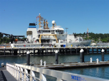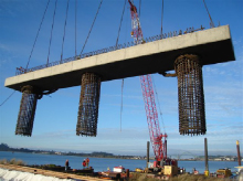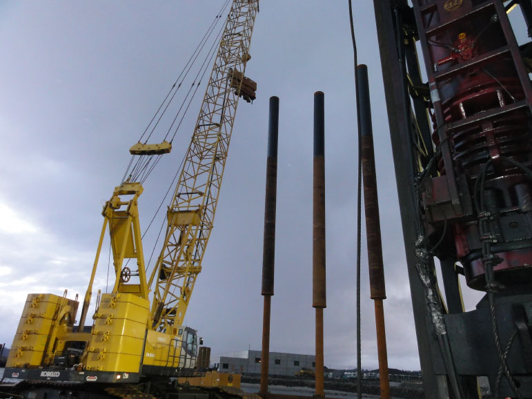 The high-profile landmark maritime LEED Silver project for the National Oceanic and Atmospheric Administration (NOAA) based in Newport, Oregon was built as a joint venture between West Coast Contractors and Andersen Construction. Andersen provided the on-land construction efforts and West Coast Contractors provided the highly complex piledriving and in- and over- water portions of the project. WCC's marine construction consisted of using four 100-to 200-ton cranes which were limited on the number of piles driven per day in order to be sensitive to the surrounding habitats. Weather and ocean tides added to the challenges of the marine environment, along with the in-water work window from November through February in order to protect the runs of native Coho Salmon. By using a custom GPS guided, barge-mounted template, WCC was able to complete the maritime pile driving in record time.