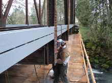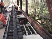 Originally built in 1900, the North Crabtree Railroad Bridge was re-constructed by WCC in 2010. The bridge is located on the Albany & Eastern Railroad (AER), which serves the timber and agriculture industries, moving logs, lumber, and agricultural goods to communities throughout the Willamette Valley and beyond. North Crabtree Railroad Bridge is one of many bridges located on the AER and runs over Crabtree Creek. WCC's renovations consisted of extensive repairs to the bridge including the replacement of rivets, bolts and structural steel. WCC's proprietary Project Control System ensured effective job planning and execution while suspended platforms were built to support the crew throughout the project to ensure the highest safety standards. Recognized for meeting award winning safety-standards, WCC takes safety and planning into each job with precise precaution. After the completion of the North Crabtree Bridge, WCC returned to perform complex repairs on three additional historic bridges on the AER.