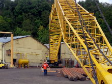 RFP began updating its plywood manufacturing plant in Coquille, Oregon in 2015. WCC drove 51 steel piling to depths of up to 87 feet to provide a foundation for the new equipment. Site conditions required WCC to bring in the Kobelco CK1600 crane, rated for 160 tons, equipped with 150 ft. of standard boom and 60 ft. of jib for a total of 210 ft.