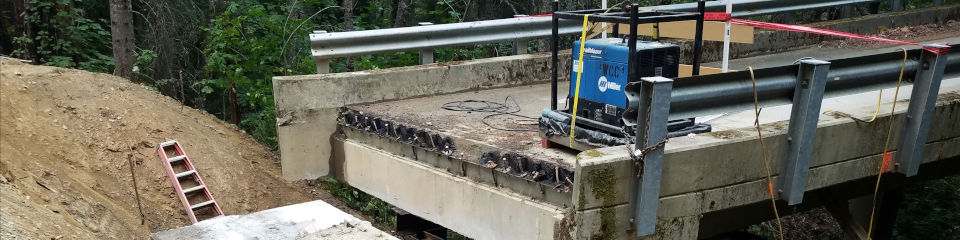 The Salt Gulch Bridge crosses Horse Creek in Siskiyou County in far northwestern California, about 30 miles northwest of Yreka. Built in 1959, the aging bridge has damage to the abutment at the south end. West Coast Contractors (WCC) was chosen to make repairs in a competitive bid process.