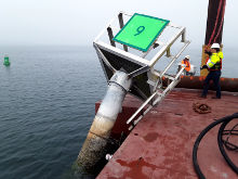 In 2017, a cruise ship bumped a fixed ATON in Crescent City Harbor, damaging the steel piling supporting the light. WCC mobilized a crane and barge at the harbor and replaced the damaged piling, helping to make sure the harbor remains safe for marine traffic.